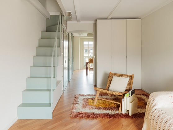 APARTMENT GNBRH+ completa la ristrutturazione di un appartamento nel cuore di Torino. Derivato dall’unione di due spazi mansardati, l’appartamento è caratterizzato da una serie di arredi fissi disegnati su misura con il ruolo di contenitori e partizioni mobili. L’architettura degli interni esalta i volumi dal forte carattere: geometrie lineari che si combinano per dar forma a spazi inattesi, calibrati e ottimizzati al centimetro, aperti e cromaticamente stimolanti, distinti da uno straordinario comfort climatico, luminoso e acustico.