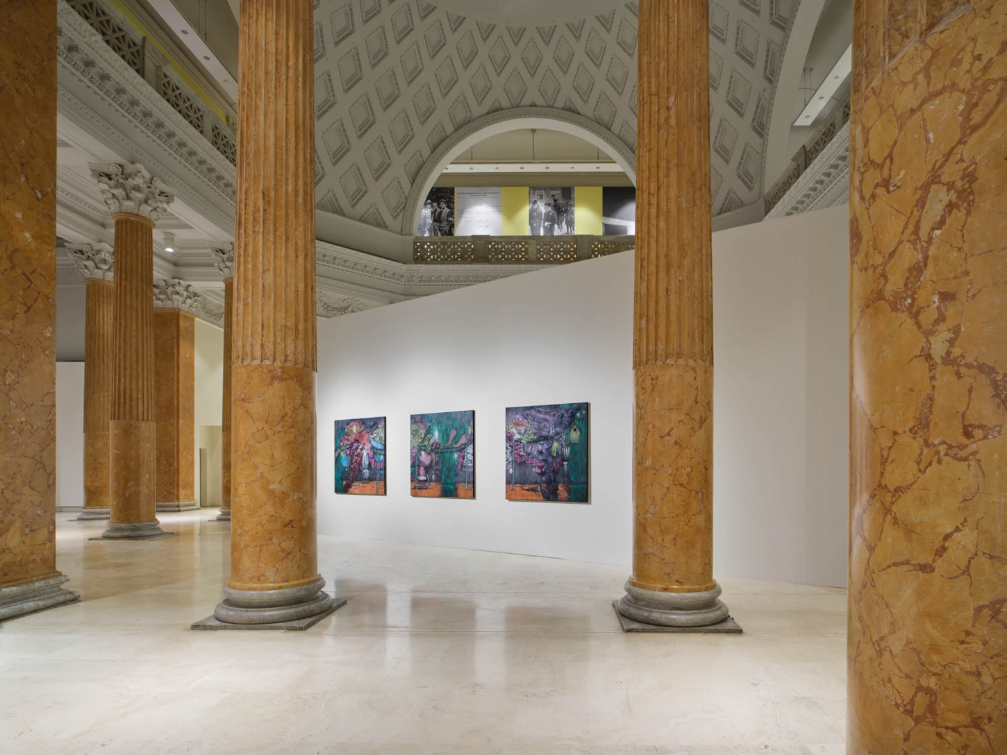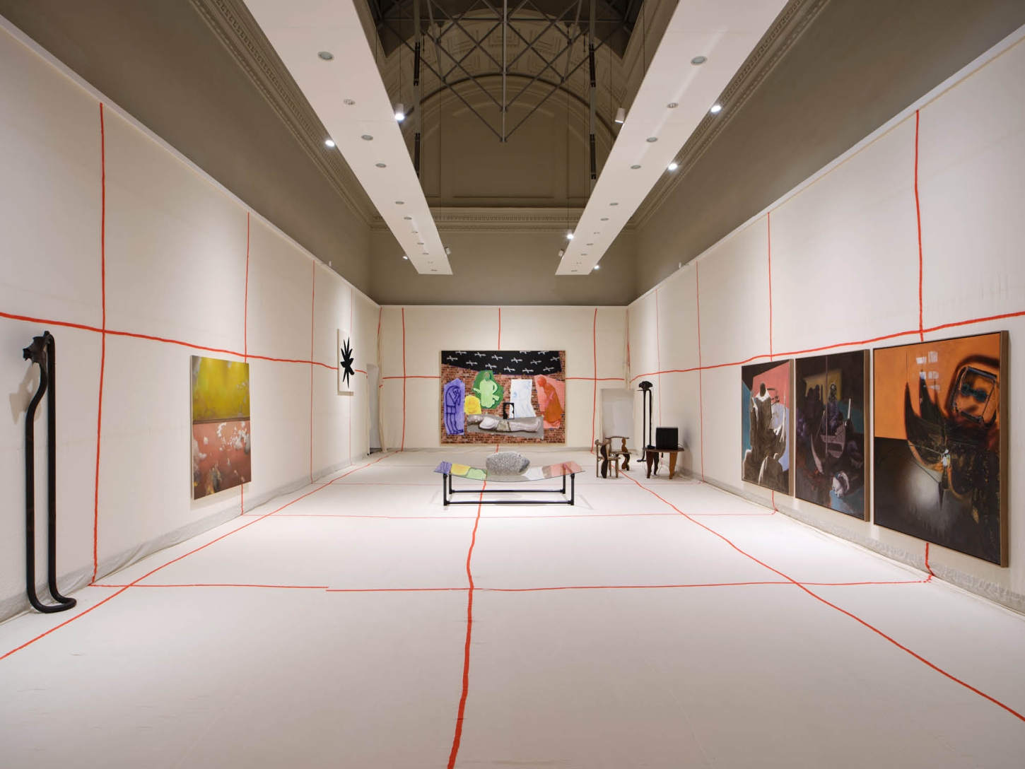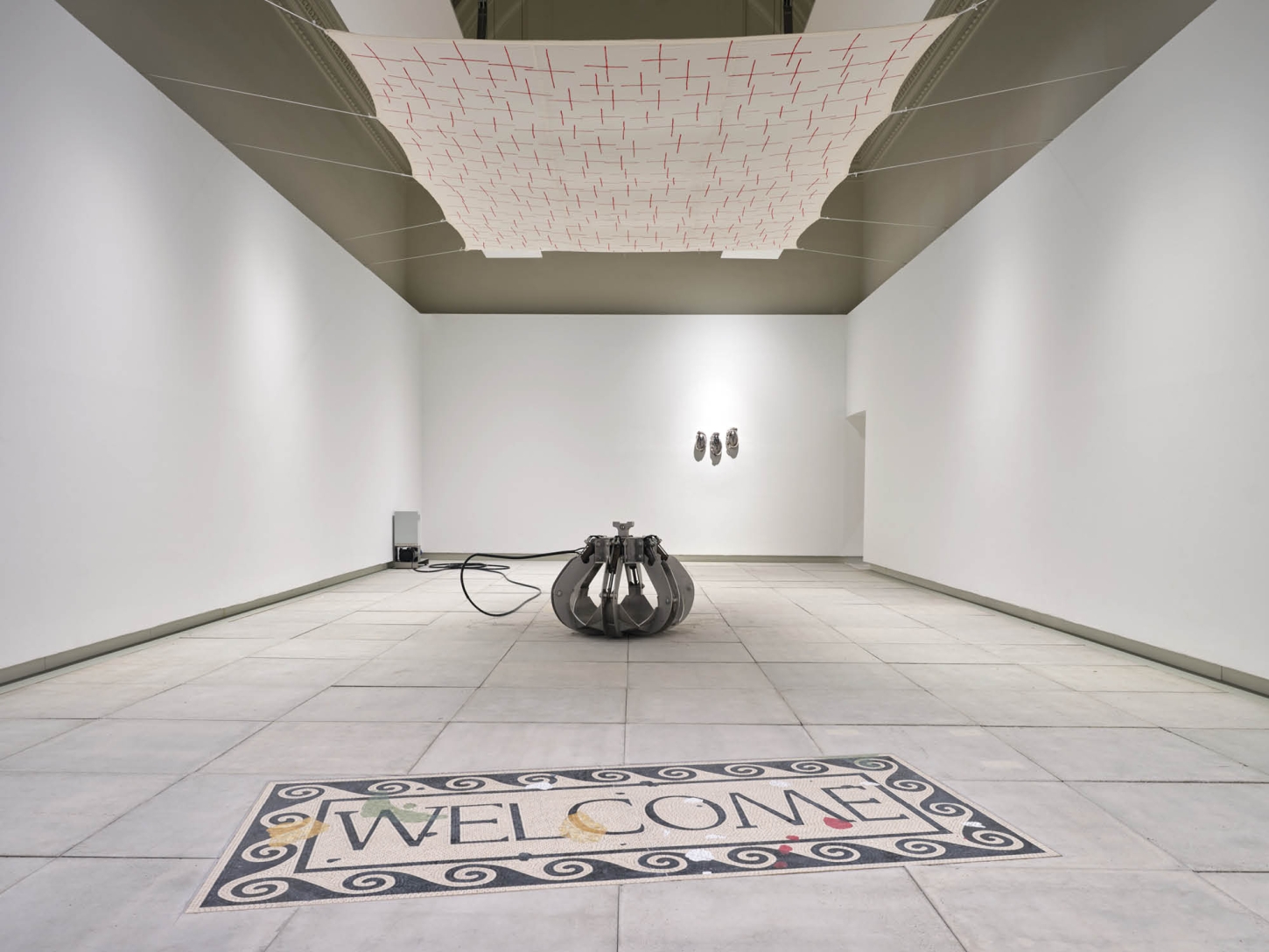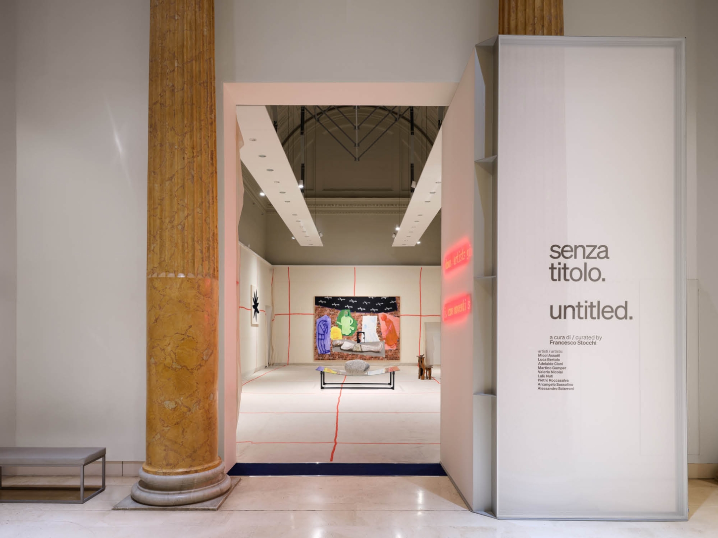 La mostra coinvolge 54 artiste e artisti, con un totale di 187 opere distribuite su oltre 2000 mq; BRH+ traduce questa pluralità in un percorso costituito da dispositivi architettonici senza gerarchie, trasformando gli spazi aulici dello storico Palazzo Esposizioni in un paesaggio narrativo aperto. Il progetto di allestimento è stato concepito come un continuum dinamico che si misura e confronta con la monumentalità neoclassica e la scala gigante del disegno originario di Pio Piacentini per le architetture del Palazzo Esposizioni, introducendo soluzioni che modulano le rigidità distributive originarie, creano relazioni mutue e trasversali tra ambienti solitamente separati e moltiplicano i punti di vista. Gli spazi ospitanti sono messi in relazione diretta, i percorsi di visita resi fluidi, aperti alla possibilità di concedere punti di osservazione spesso molteplici e variabili. Così, ad esempio, l’ambito della grande rotonda centrale del Palazzo nella sezione curata da Francesco Bonami si coniuga con alcune porzioni delle grandi sale vicine, secondo un’idea di progetto che tenta – qui come negli altri casi – di rompere qualsiasi schematicità distributiva, fluidificare le connessioni tra i distinti volumi e organizzare traiettorie di visita alternative tra loro.