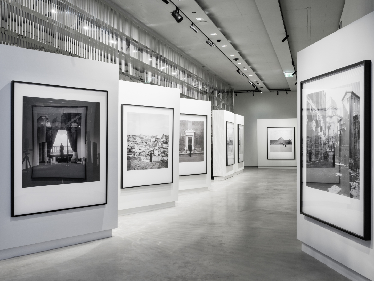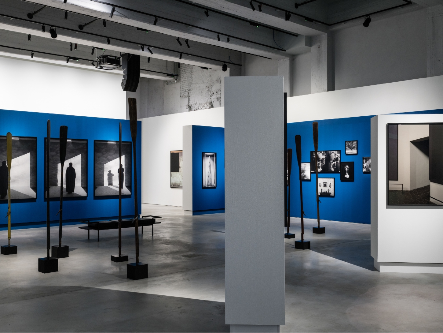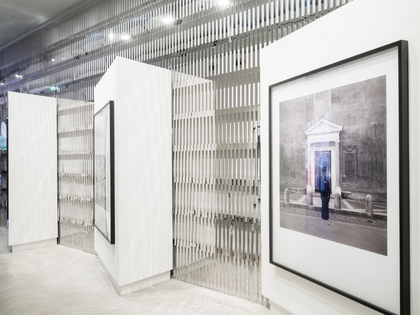 Material and color choices give way to the strength of the images, favoring calm and deep tones that dialogue with the black and white of the photography. The installation is structured through a sequence of environments that alternate density and breath, recollection and openness, according to a measured spatial grammar calibrated to the semantic intensity of the images. Great attention is paid to the design of the light, which writes the space acting as a compositional and dramaturgical element, defining thresholds of attention and suggesting a slowed-down and meditative reading.