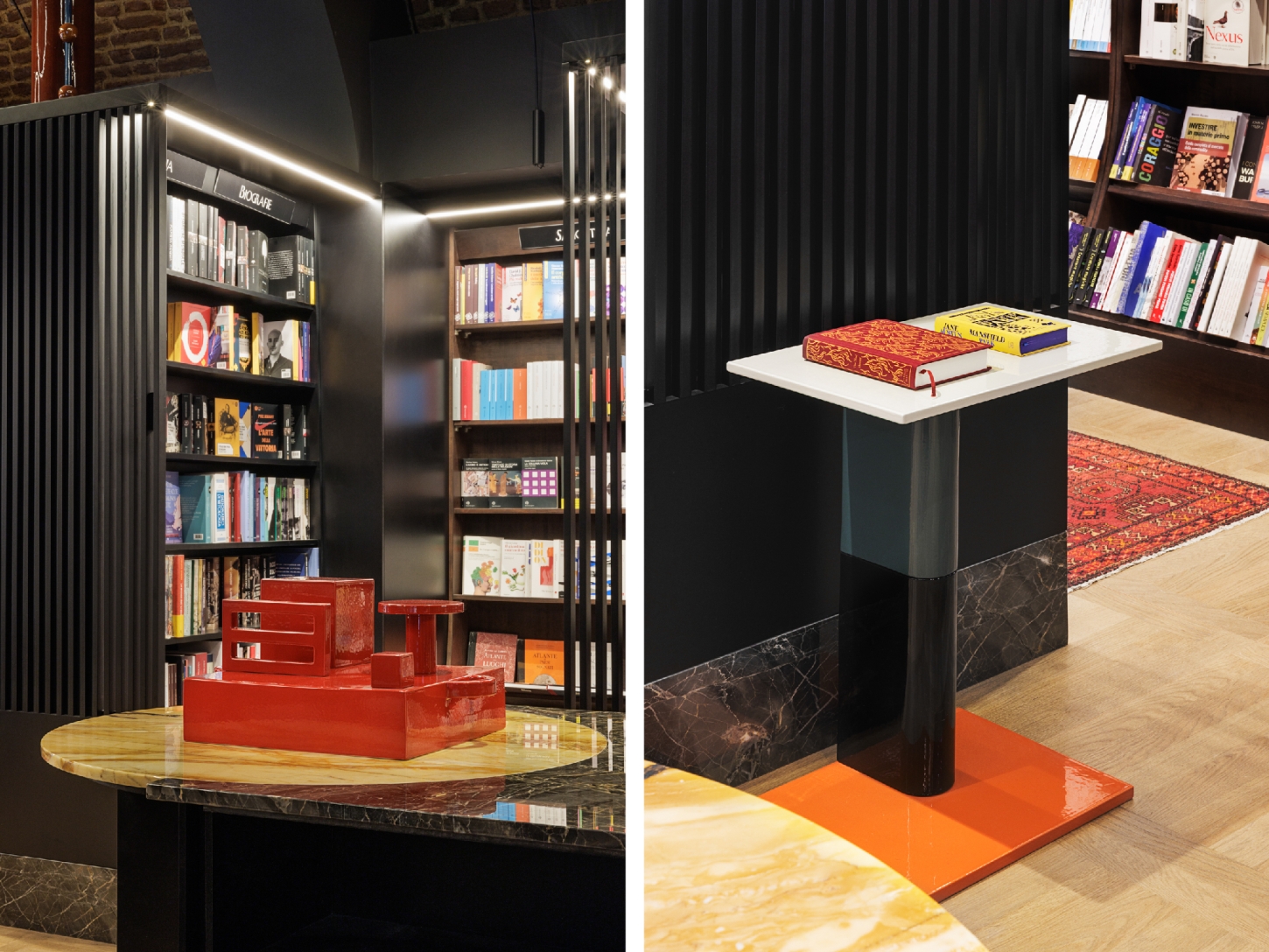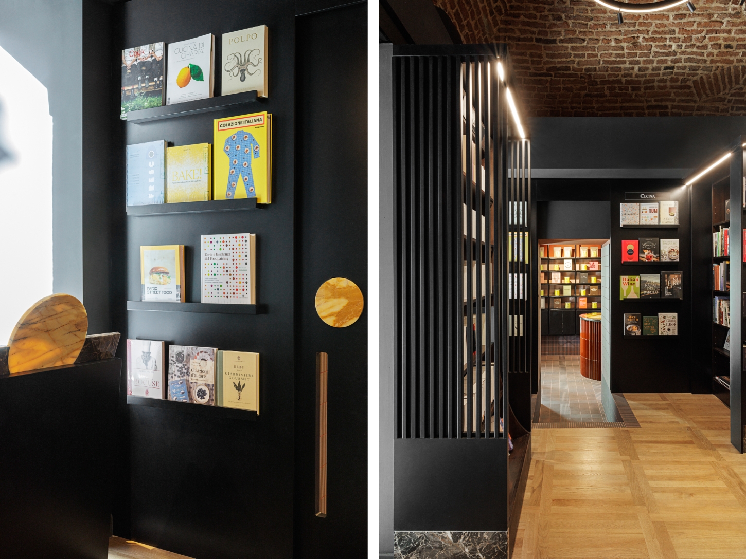 The new bookstore headquarters result from the union of three units with a total commercial surface area of 216 square metres, undergoing extensive renovation. The programmatic desire to combine heritage and novelty guides the design of the new premises of the bookstore and its small adjacent cafeteria, as well as the new furnishings, all custom-made and partly designed to integrate the iconic elements of the historical furniture, which have been restored and repositioned.