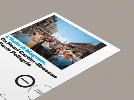 La collaborazione dello studio con CAMERA – Centro Italiano per la Fotografia continua con la mostra Arrivano i Paparazzi! Fotografi e divi dalla Dolce Vita a oggi. La nuova veste grafica inaugurata con L’Italia di Magnum si evolve, arricchendosi di significato: le tre fotografie di Tazio Secchiaroli si susseguono in un crescendo di dimensione e intensità, unendosi in una forma dinamica, che rievoca lo scatto continuo, prassi comune nella fotografia scandalistica.